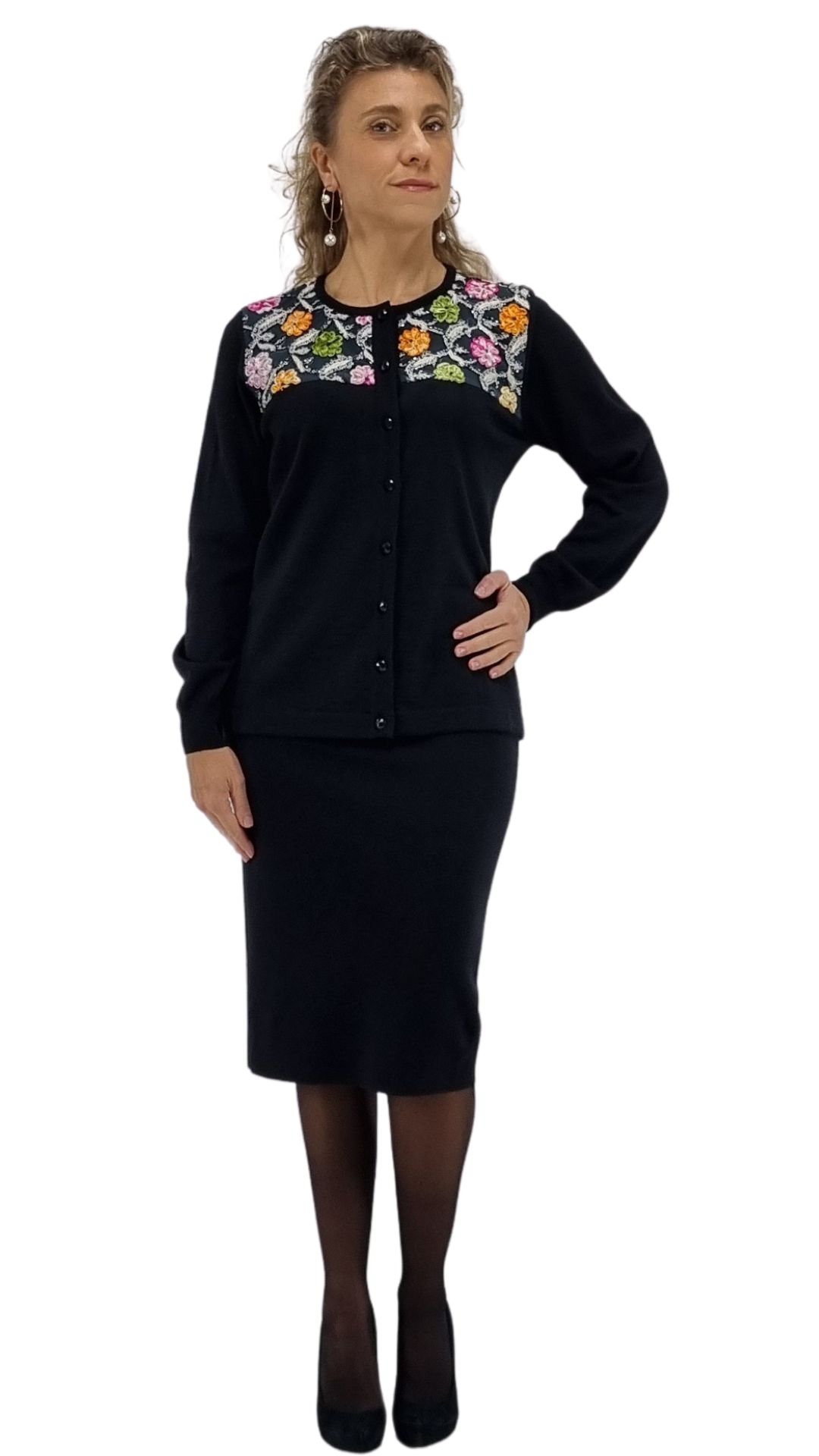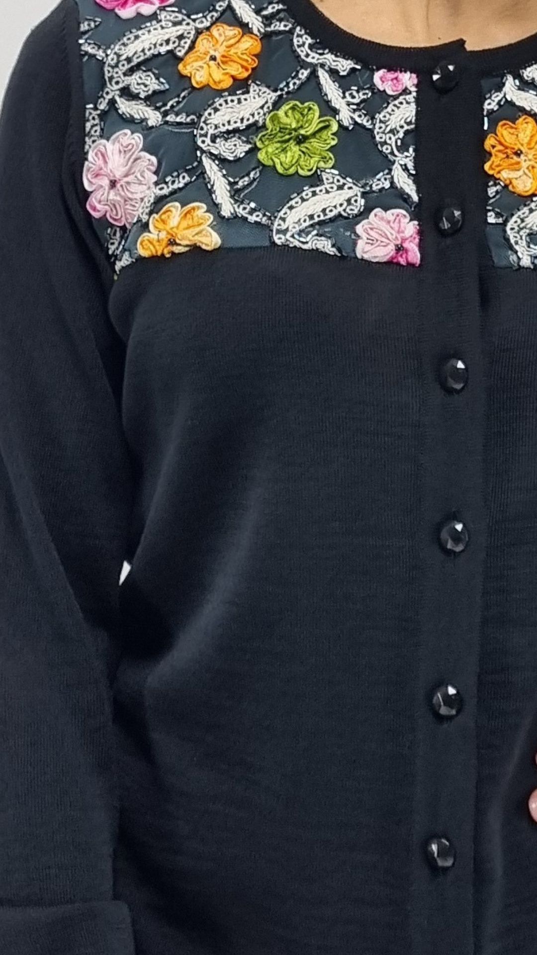 Chiusura con bottoni di colore nero.