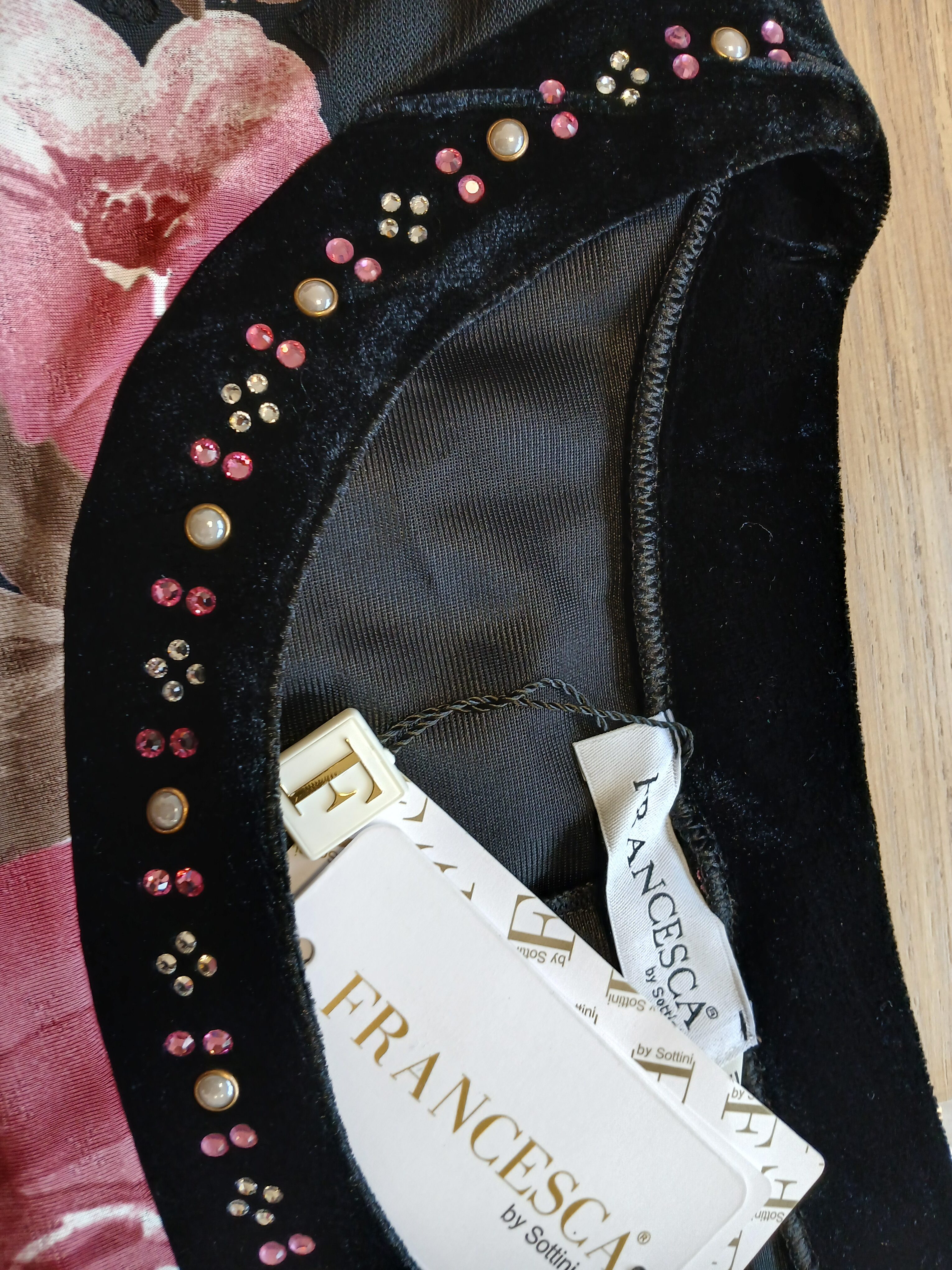 ricamo strass sul collo