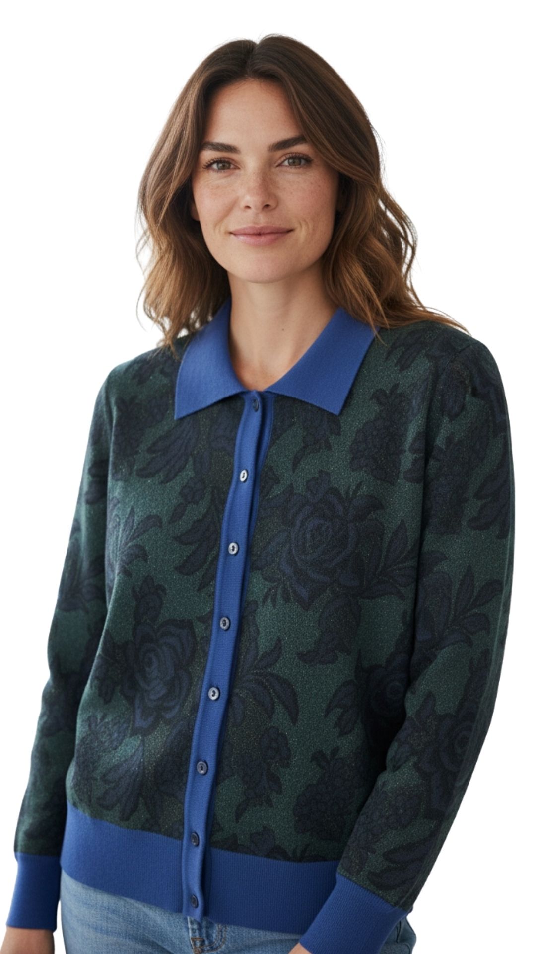 colletto e profilo bluette con bottoni neri e punto luce bluette