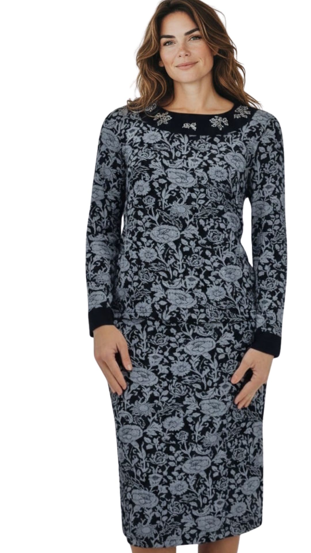 Stampa fiori con ricamo di cristalli.
