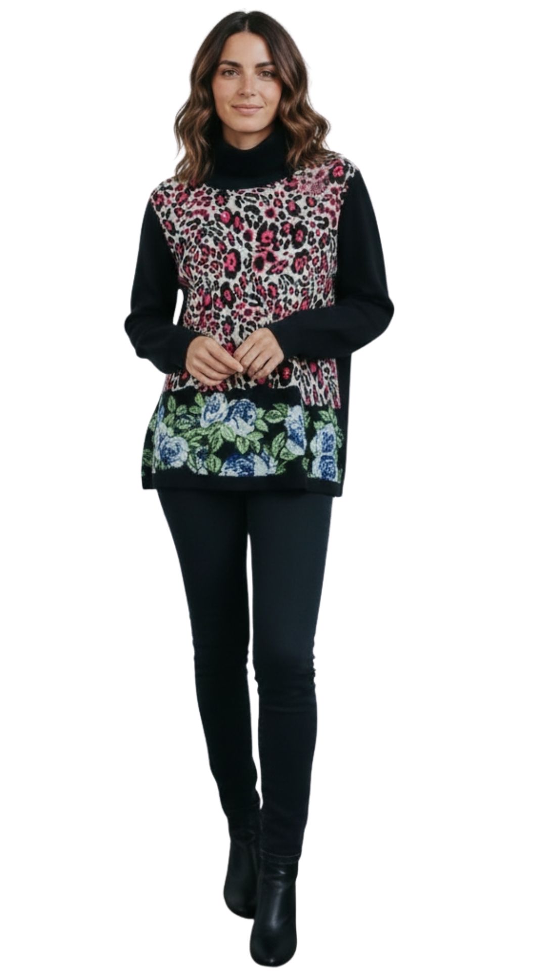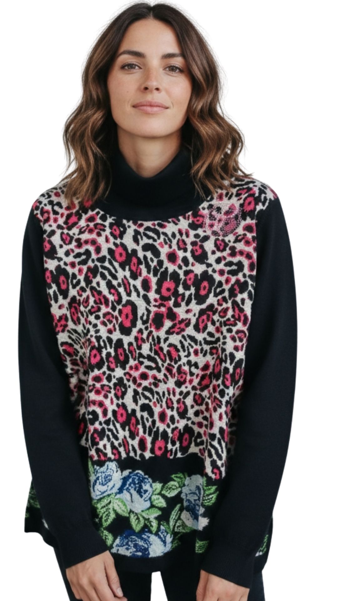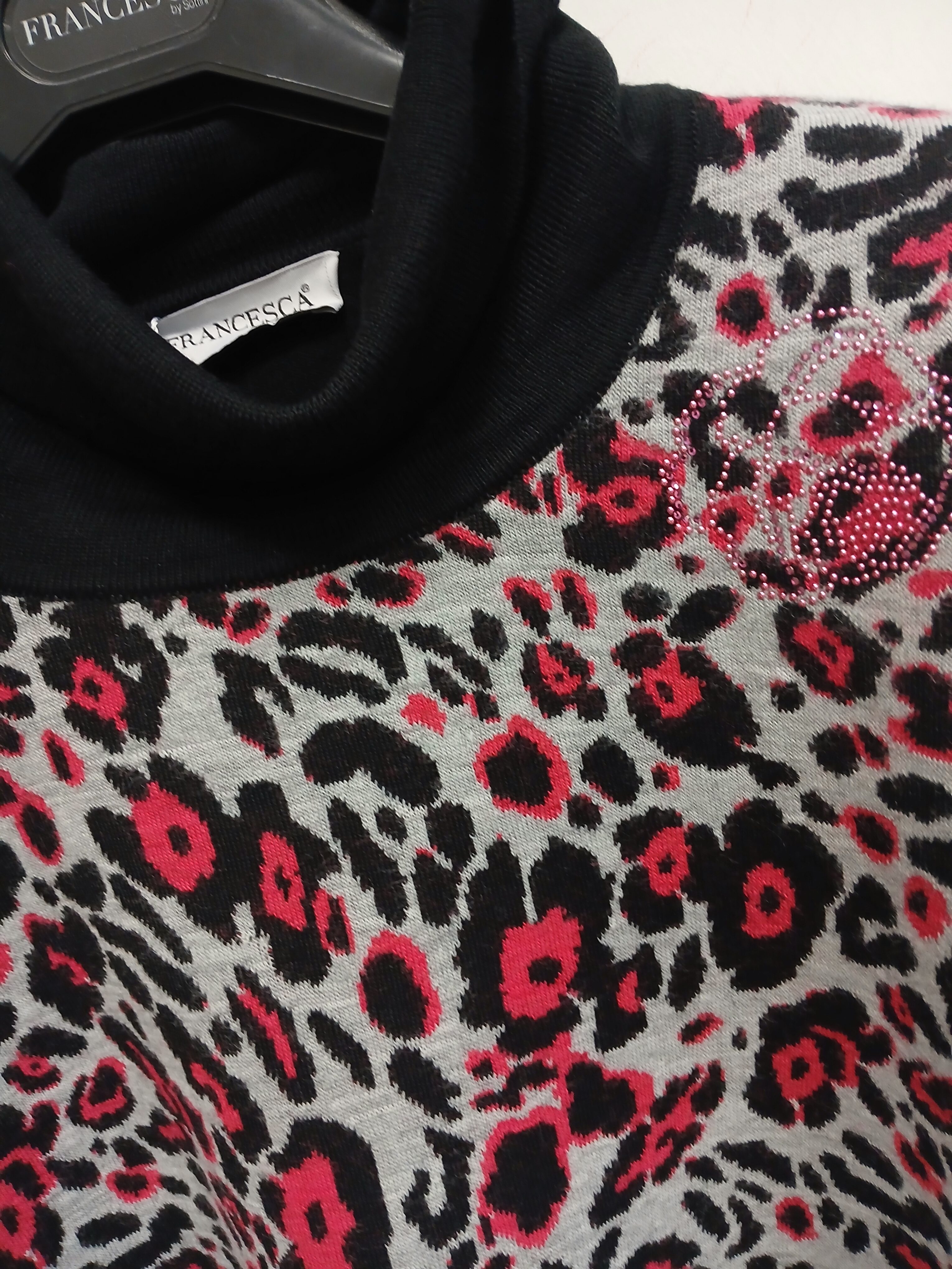 Maglia dolcevita davanti lavorazione intarsio maculato