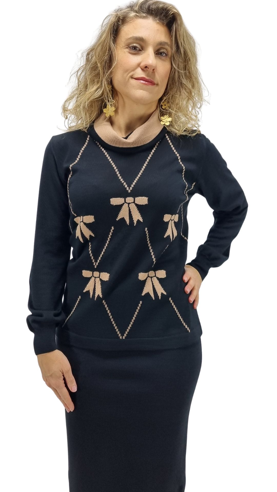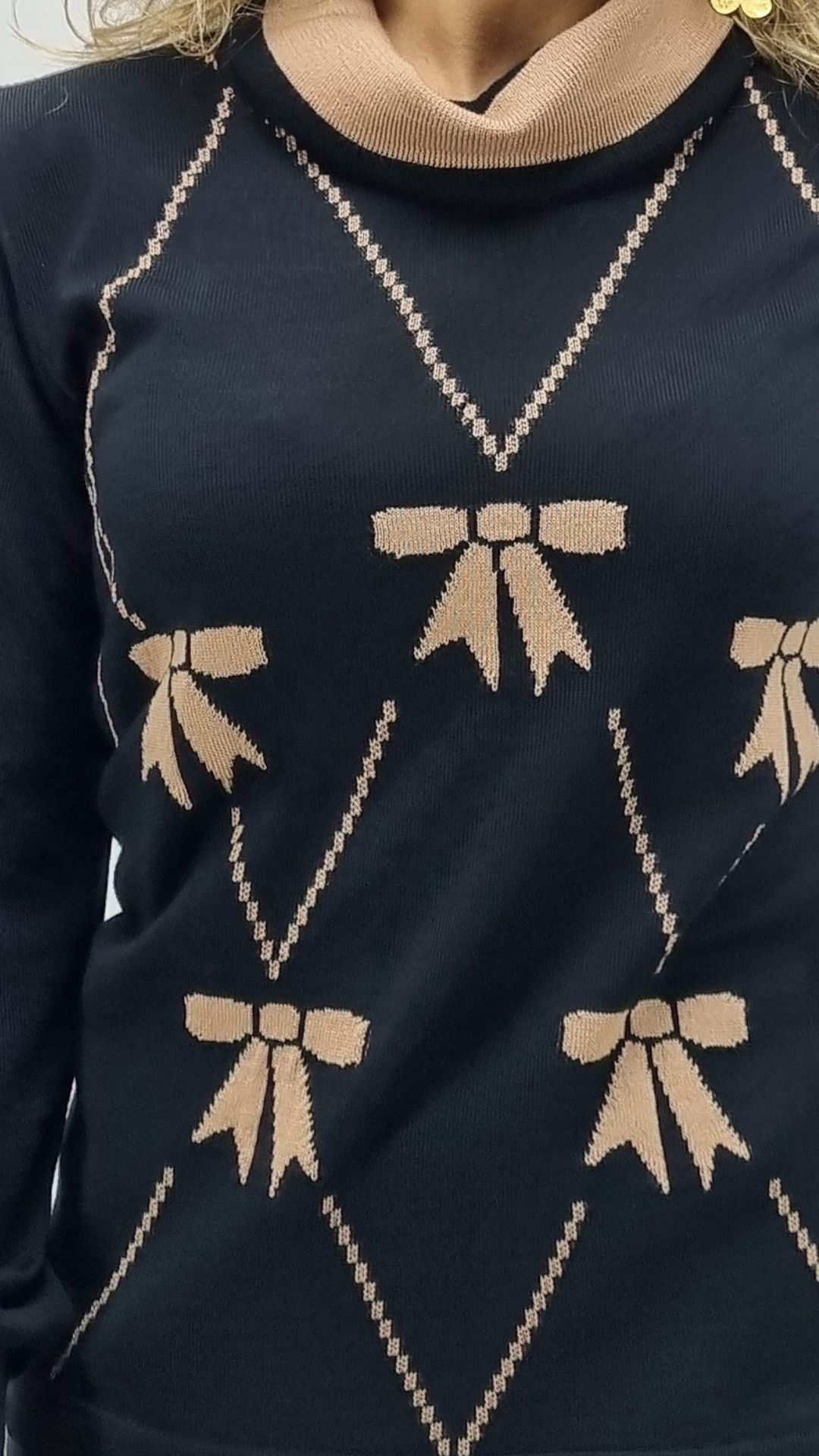 Maglia dolcevita davanti lavorazione intarsio motivo fiocchi