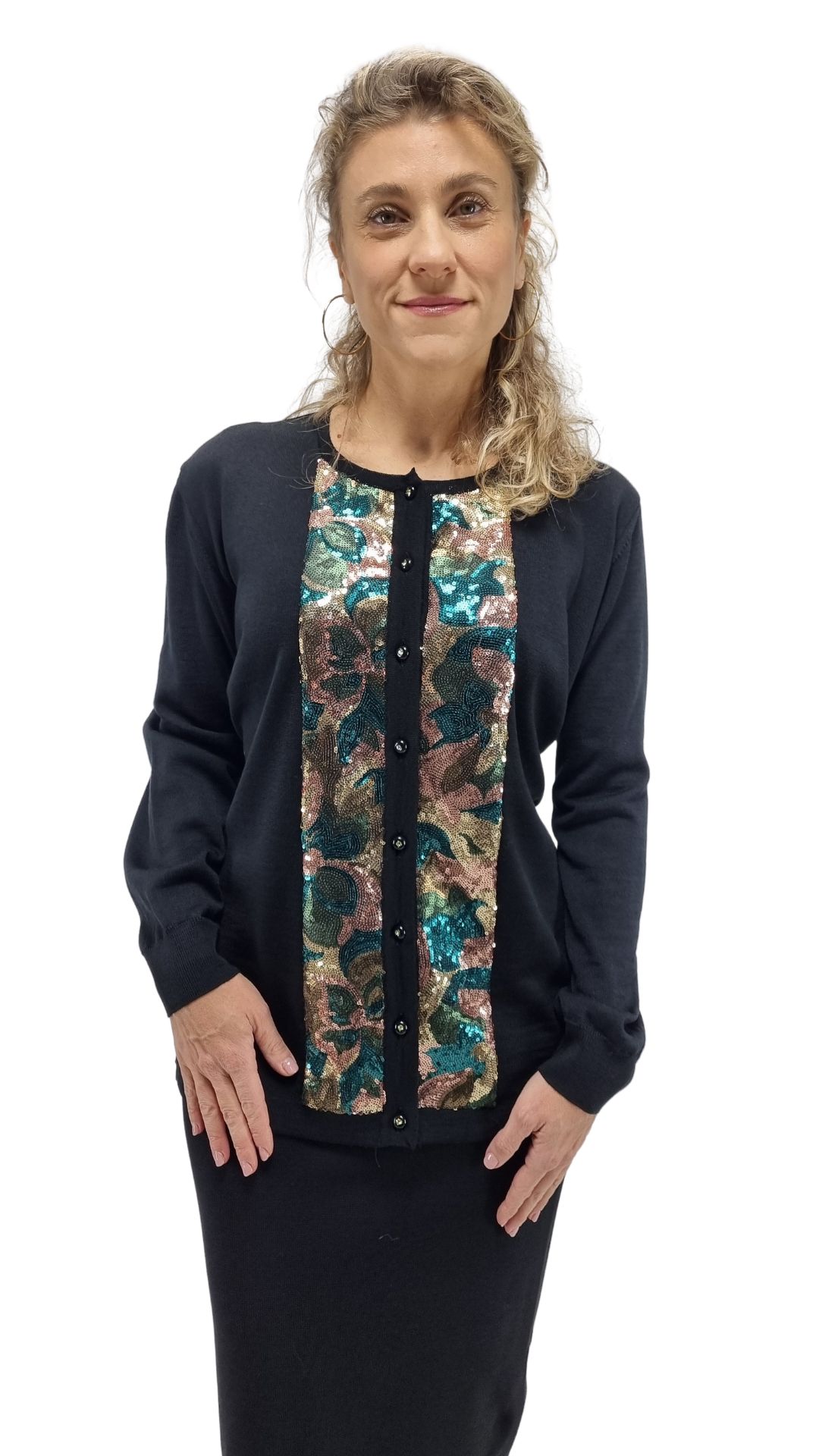 Chiusura con bottoni di colore nero con punto luce