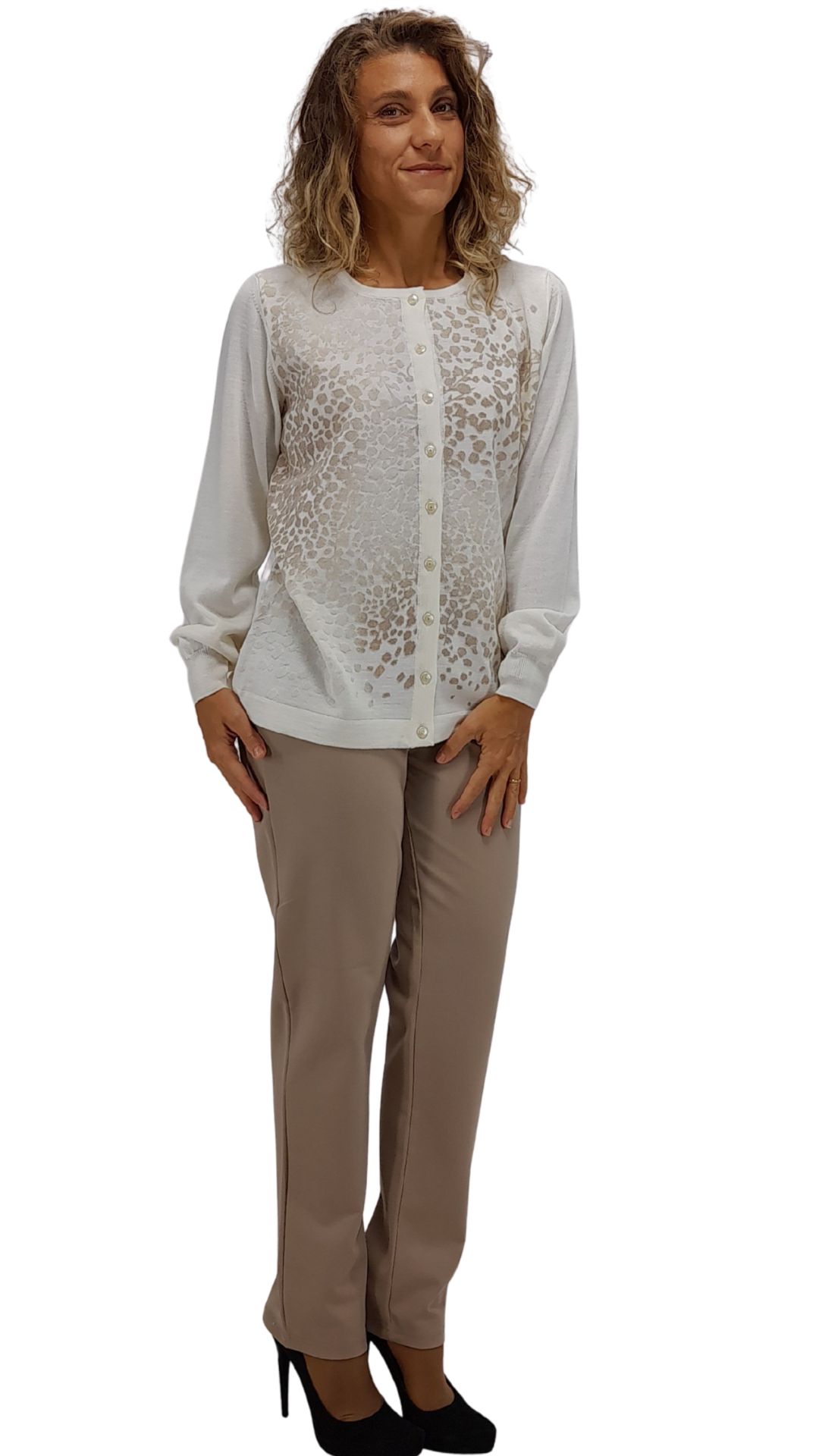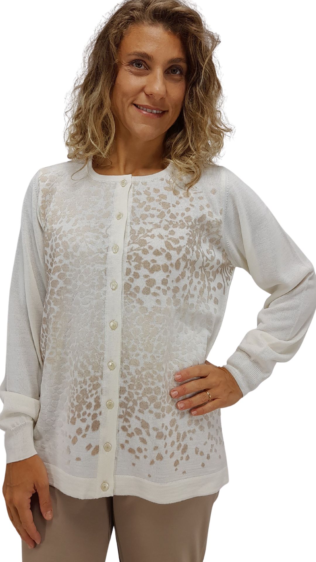 Coreana con lavorazione sul davanti flock motivo maculato colore beige .