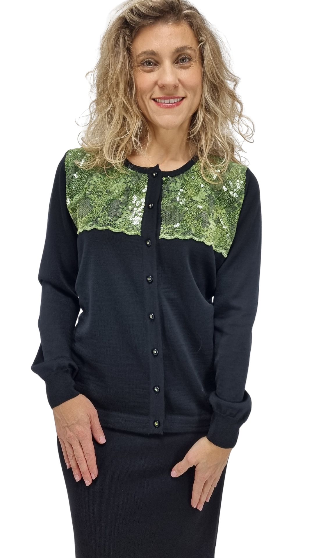 Chiusura con bottoni di colore nero.