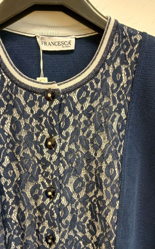 lavorazione Punto Stoffa profili collo blu/bianco lurex