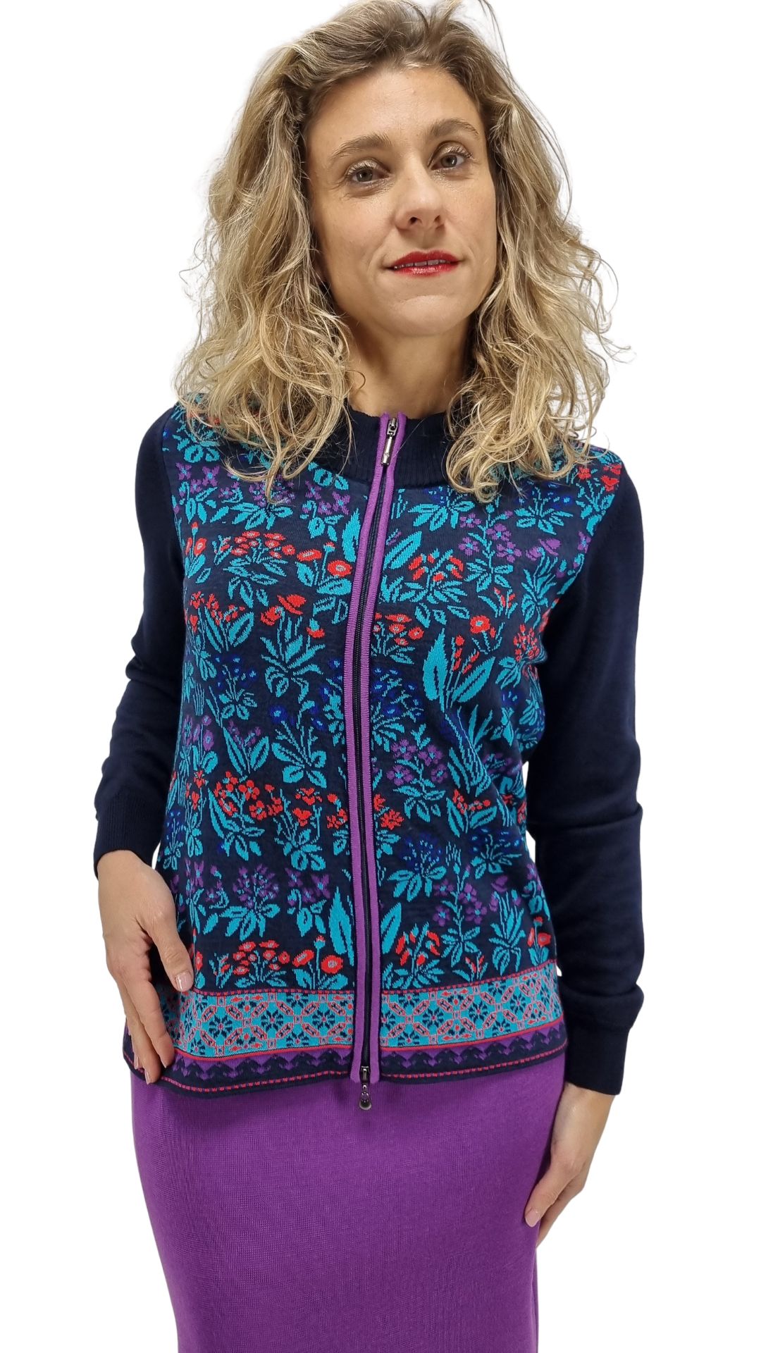 Giubbino con lavorazione preziosa con motivi floreali direttamente nella trama impreziosita con applecazione di stass