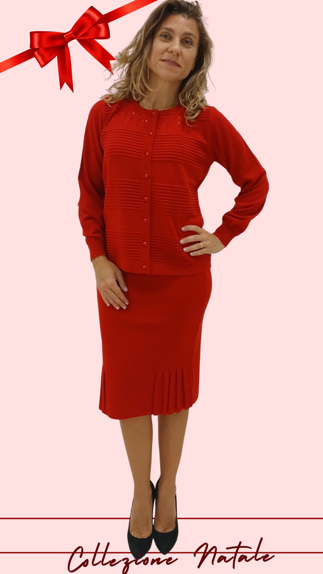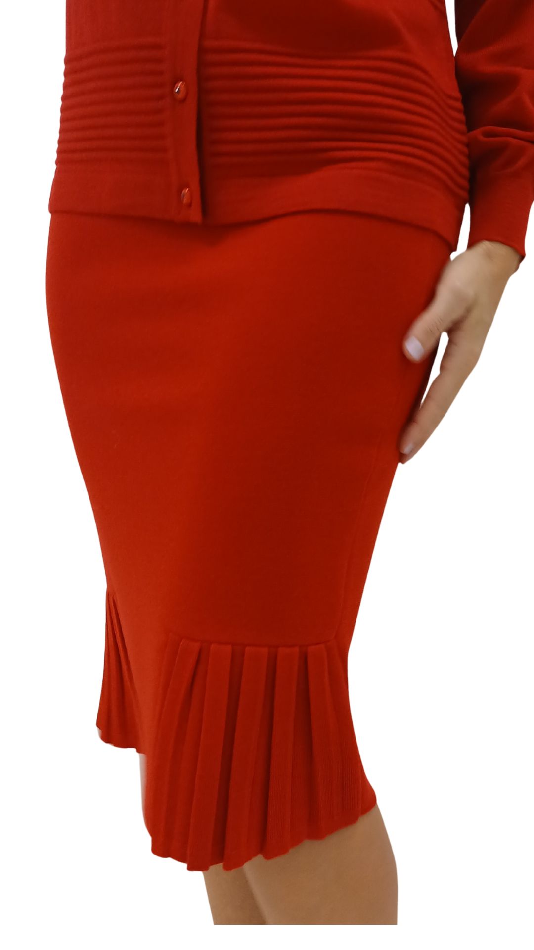 Gonna tubino in pura lana con pieghe plissè ai lati.