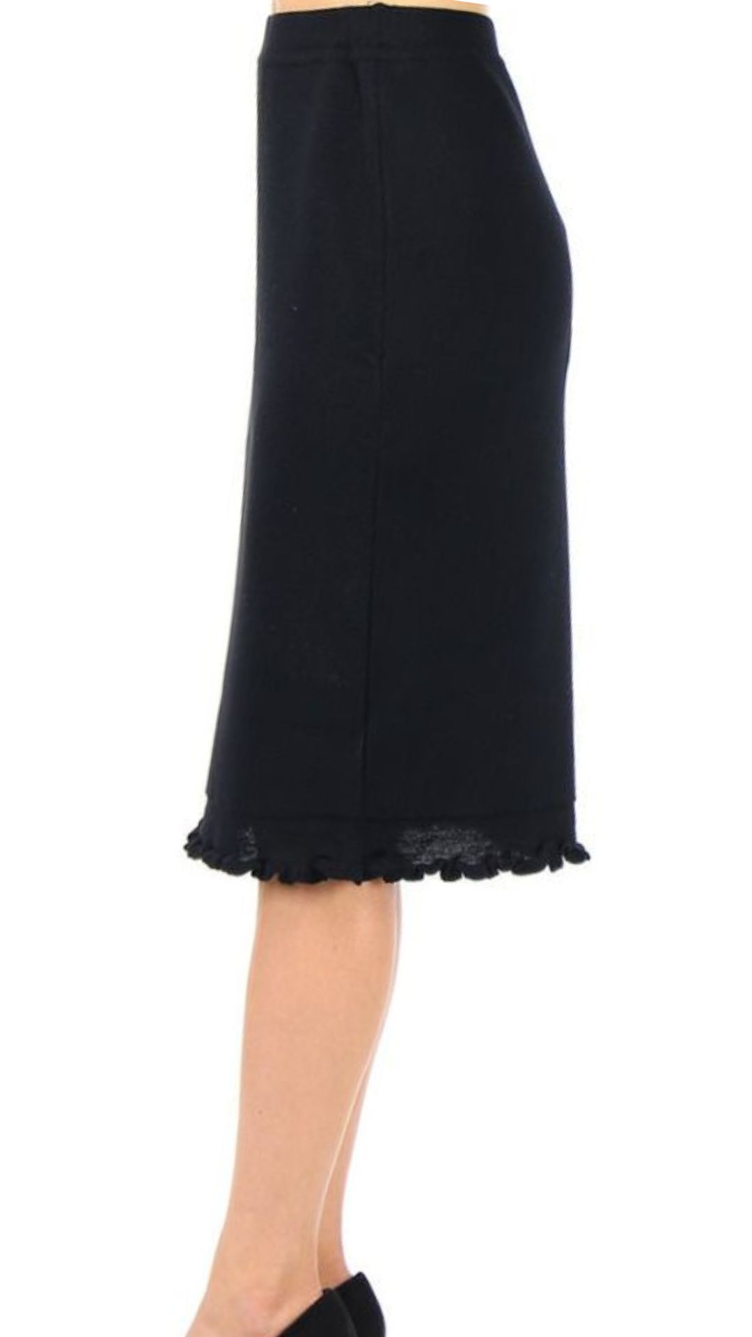 Gonna tubino in pura lana con piccolo ricciolo al fondo.