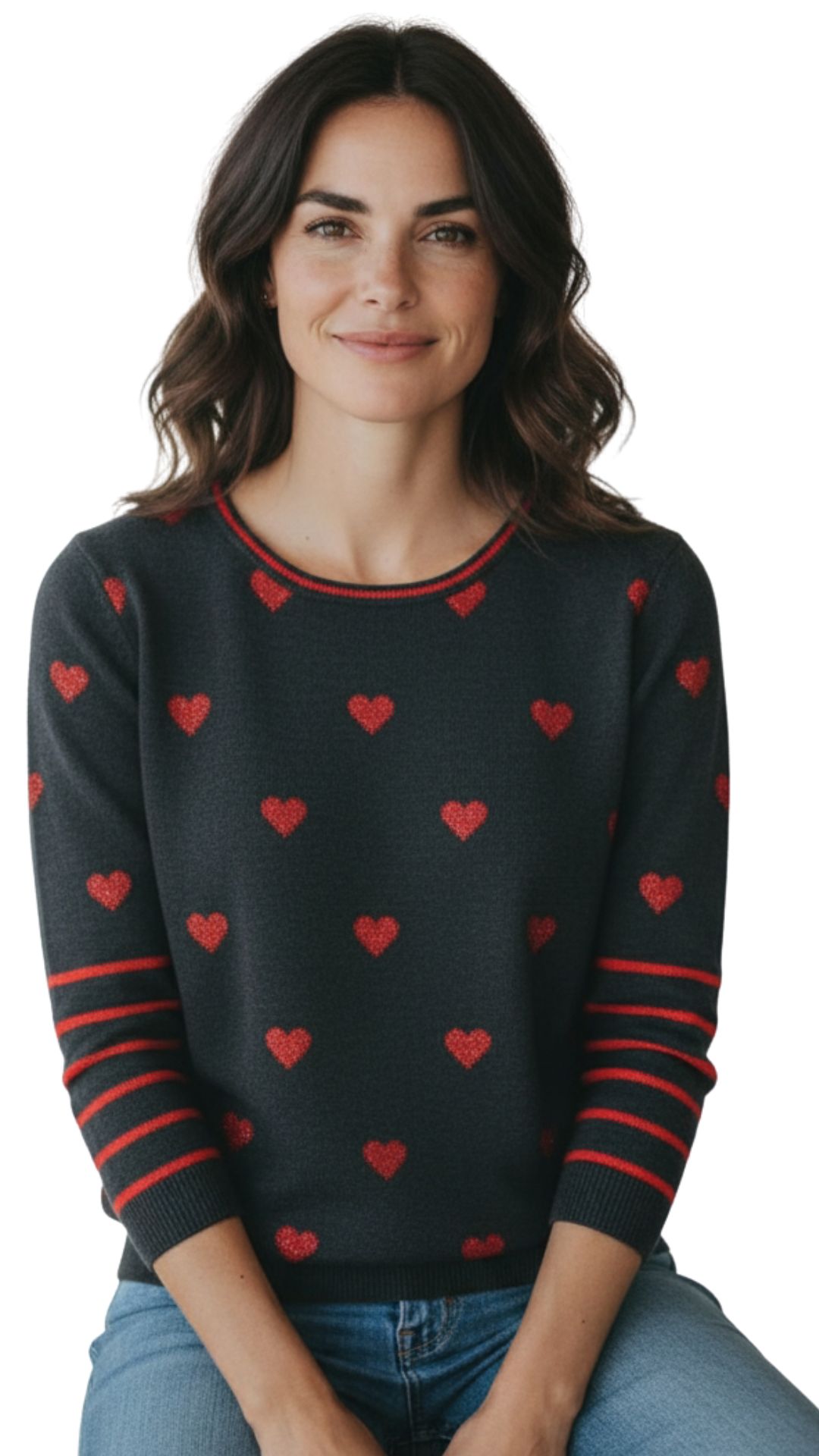 Nera con ricamo intarsio Cuori Rossi -collo profilo rosso