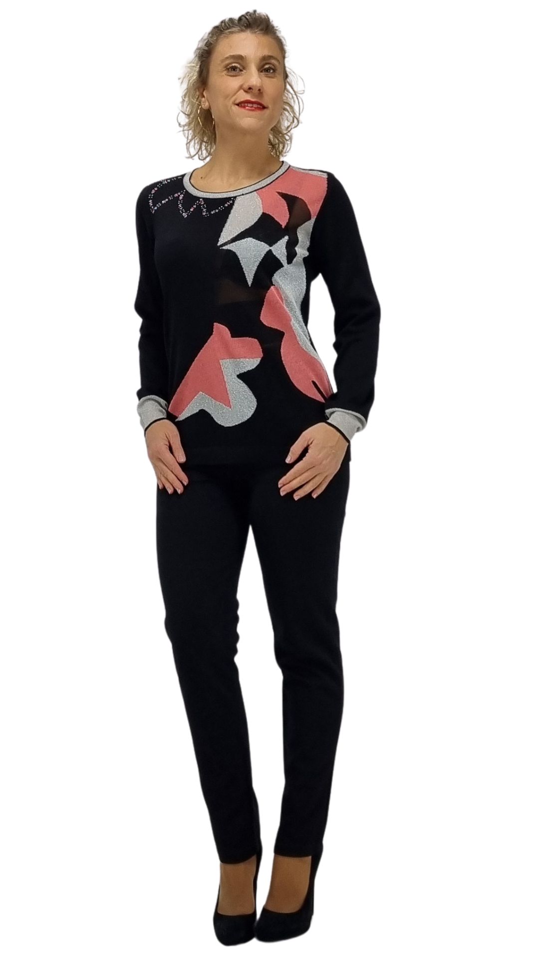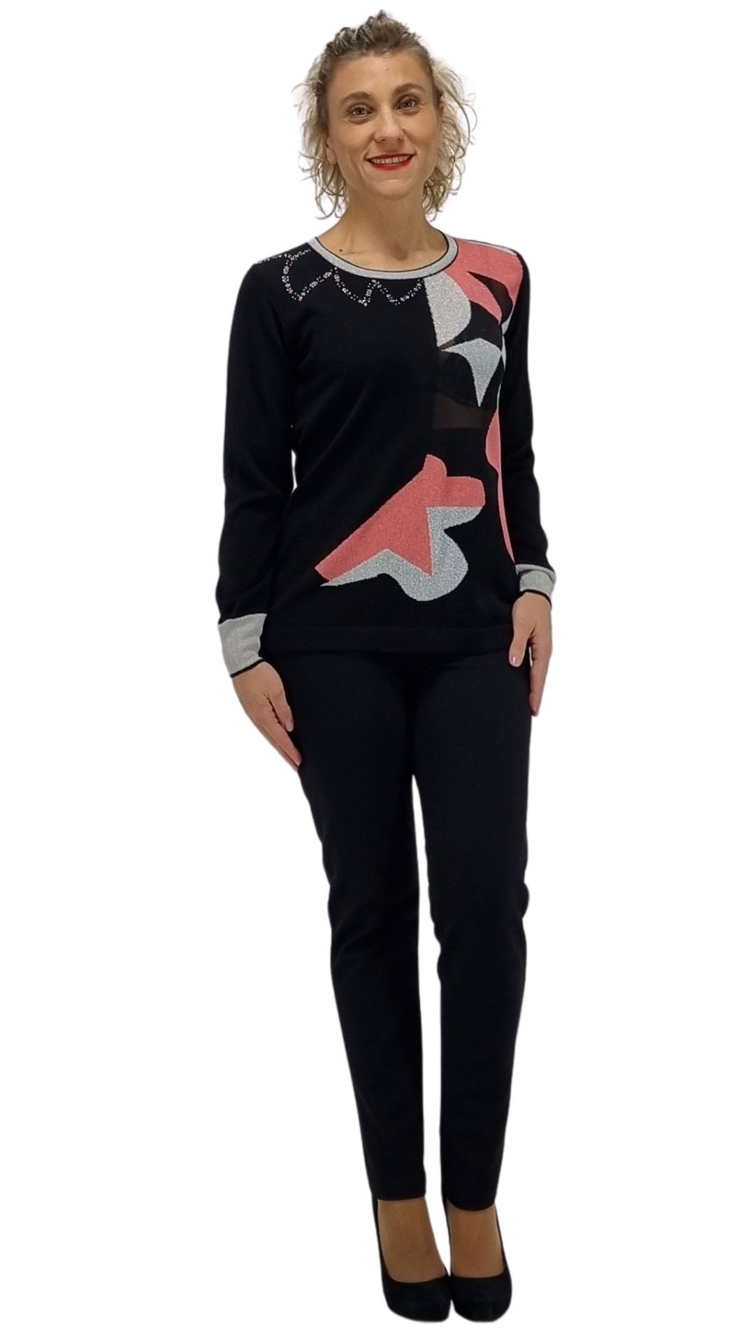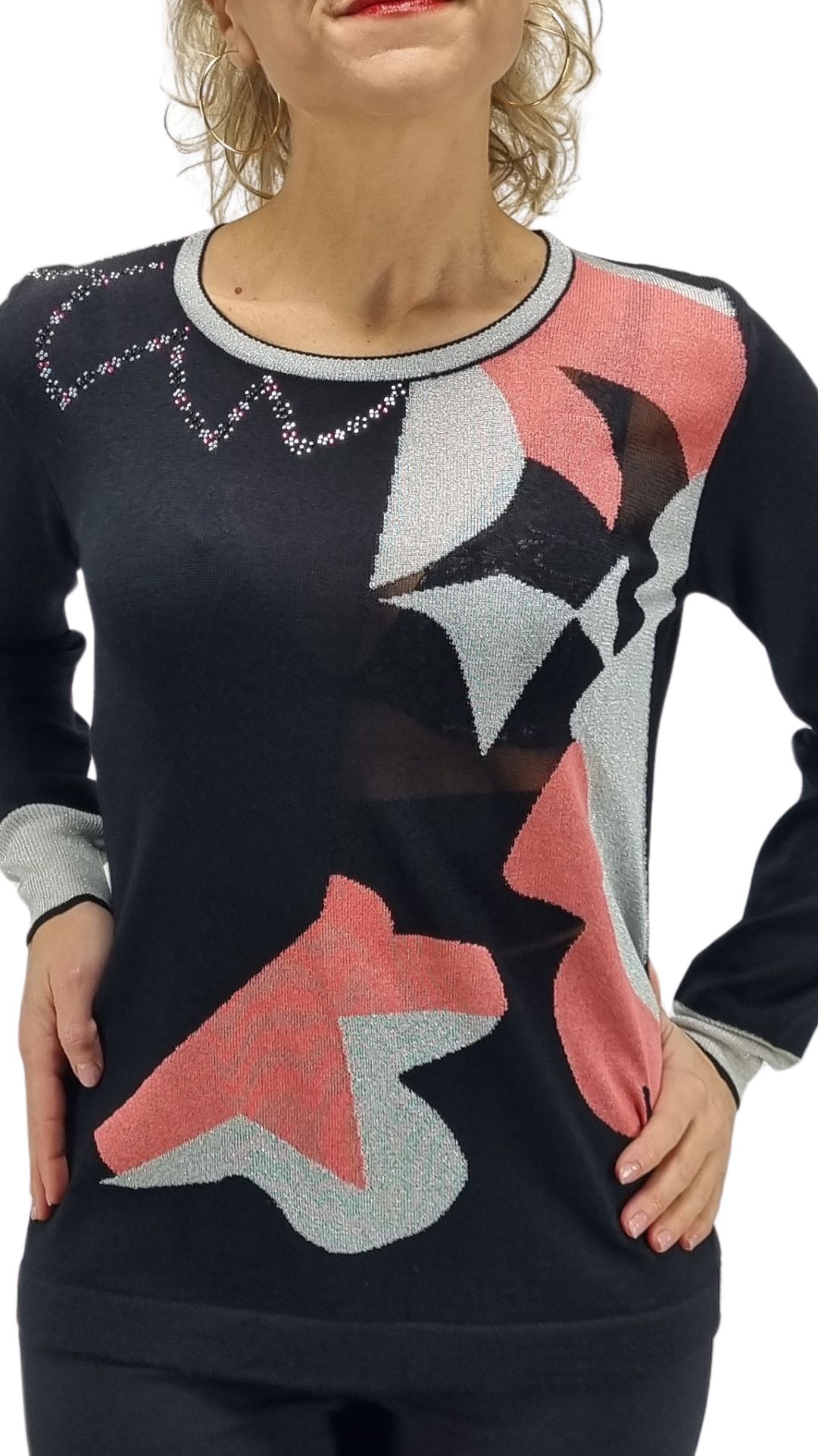 Maglia girocollo Intarsi Lurex e strass