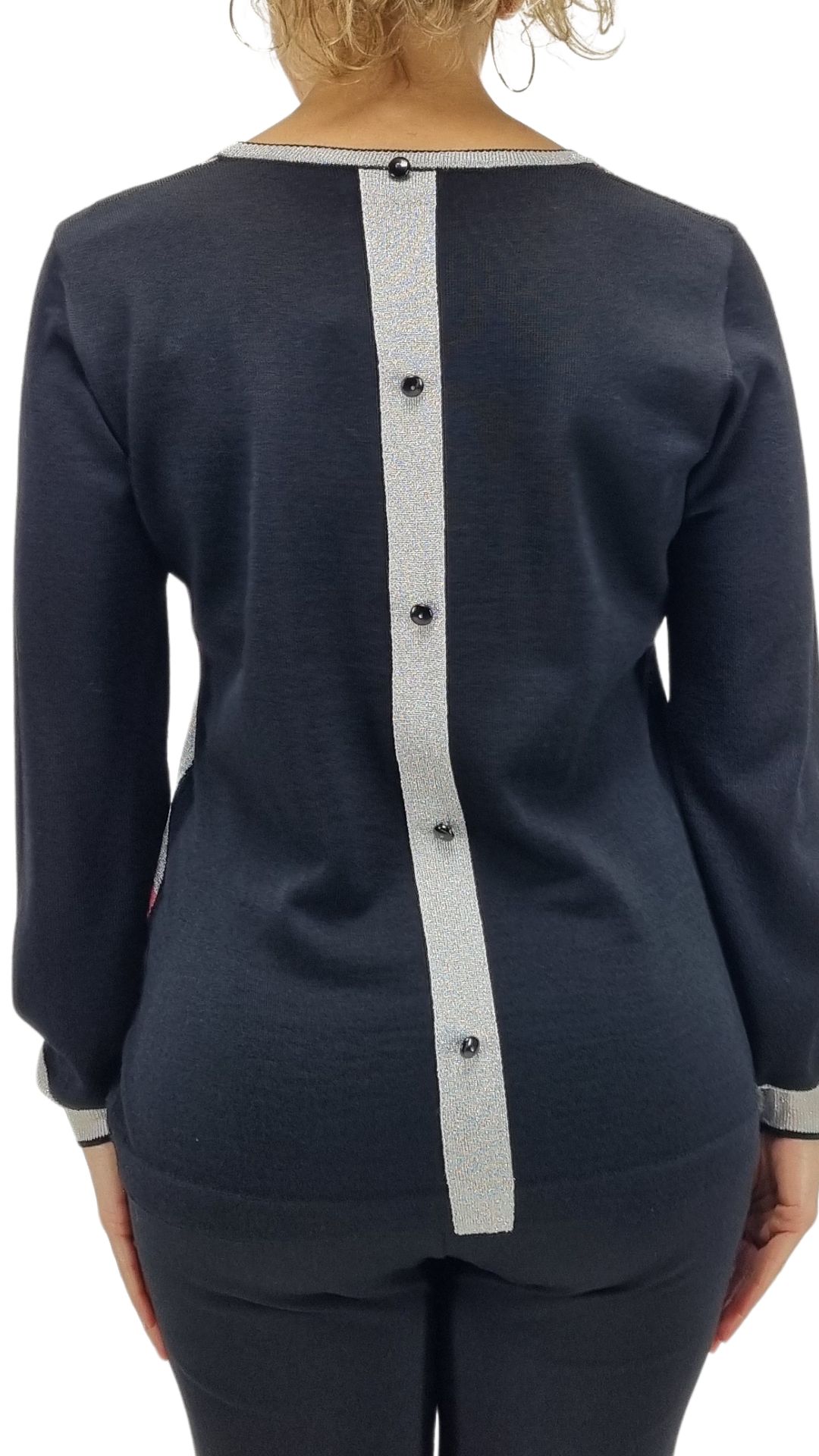 dietro finta lista con bottoni in lurex argento