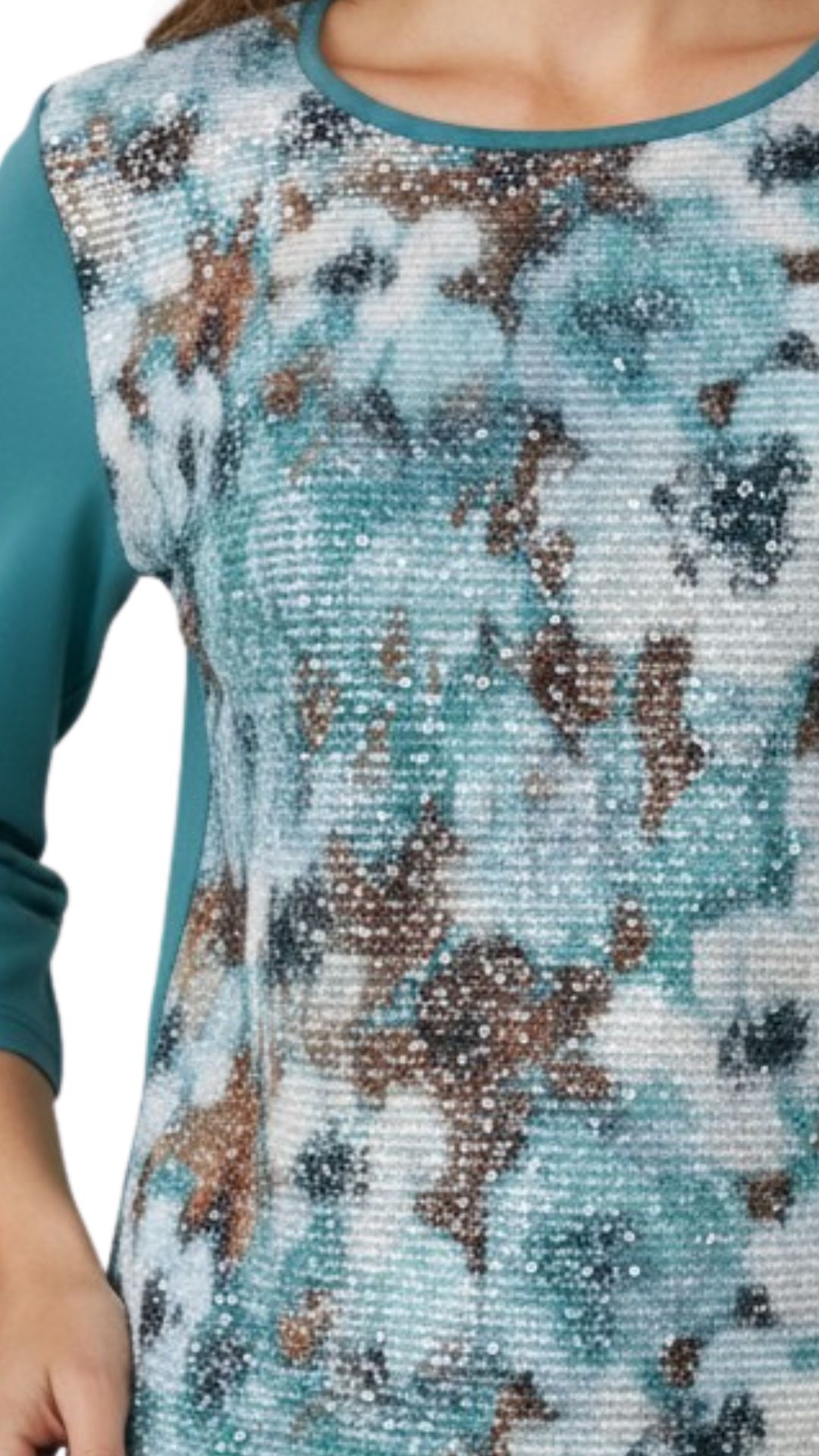 dietro e maniche tinta unita,davanti stampa maculata di paiette confortevole e manica 3/4